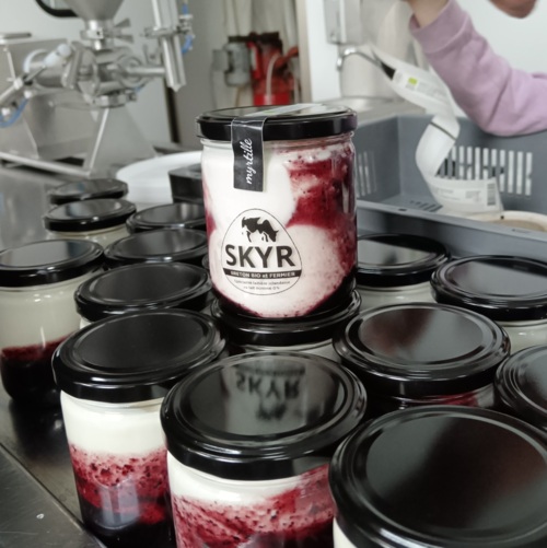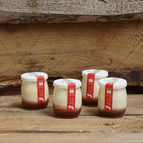 Nous transformons l'intégralité du lait produit à la ferme en beurre, crème, yaourts, desserts. Tous nos produits sont bio et les ingrédients utilisés (fruits) sont produits à la ferme dans la mesure du possible, ou par des producteurs voisins.